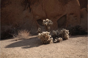 Dans le parc du Joshua tree, les montagnes semblent vivantes, leur couleur vire du beige au rouge et viennent accueillir les cactus et touristes comme en témoigne le noir immaculé des routes lovées dans les dunes. Pour celui venu se divertir pour le weekend, sont mis à disposition, un emplacement de camping délimité et le barbecue géant prêt à griller.